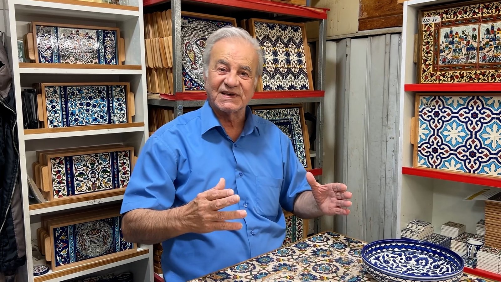 في شارع حارة النصارى بالبلدة القديمة بالقدس، يقف المواطن إيلي جورج كوز حارسا لفن الخزف والسيراميك الذي ورثه عن والده قبل نصف قرن، في متجر عريق يتجاوز عمره 100 عام، لكن المهنة تعاني من قلة الزبائن.