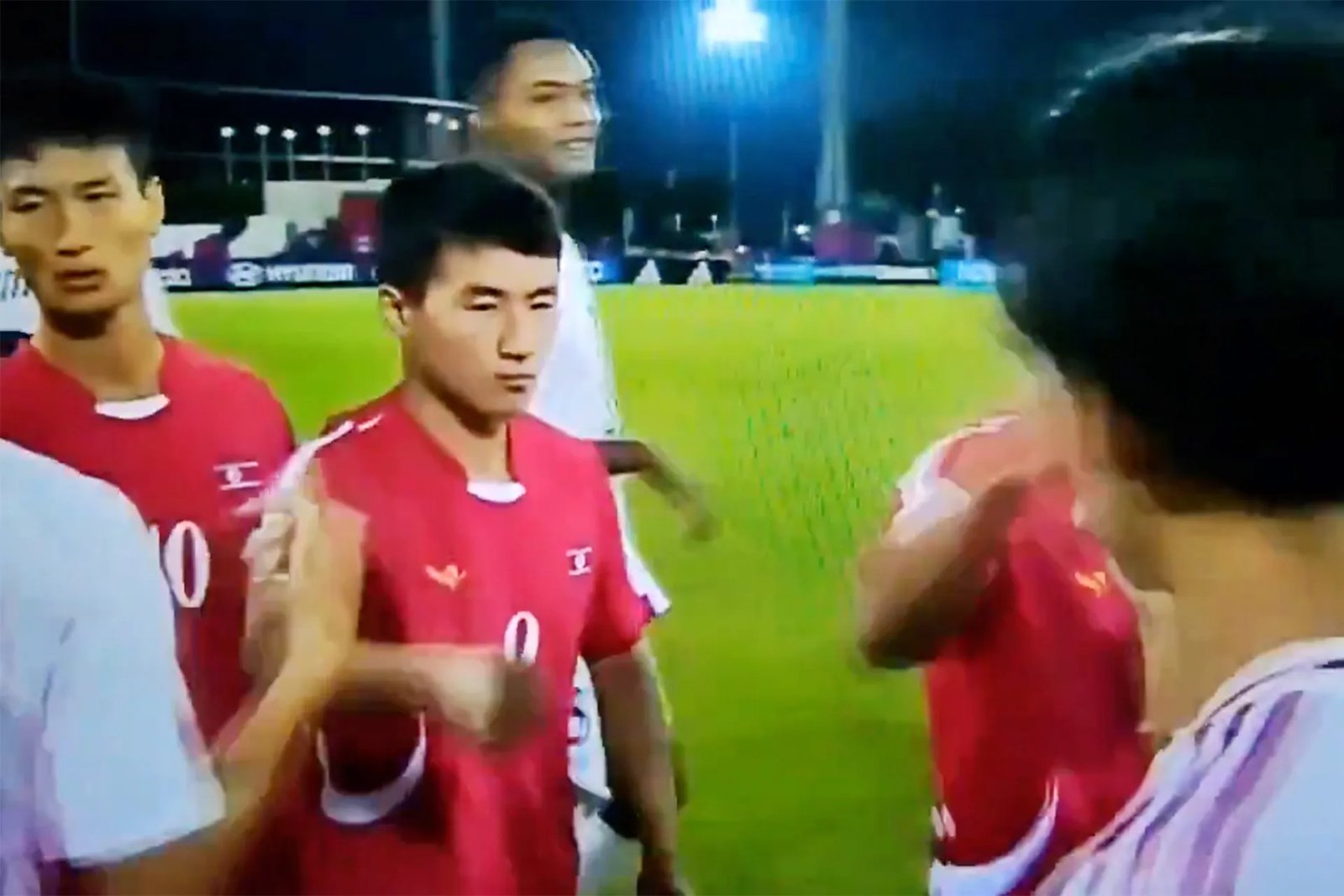 أثناء اصطفاف اللاعبين في ملعب إسباير لتبادل التحية التقليدية، بدلاً من المصافحة، بدأ لاعبو كوريا الشمالية بتوجيه لكمات على أيدي لاعبي اليابان. وقد التقطت كاميرات الفيديو هذا المشهد الصادم، وسرعان ما انتشر على نطاق واسع عبر وسائل التواصل الاجتماعي، مما أثار استياءً واسعاً من قبل المشجعين والمحللين الرياضيين.