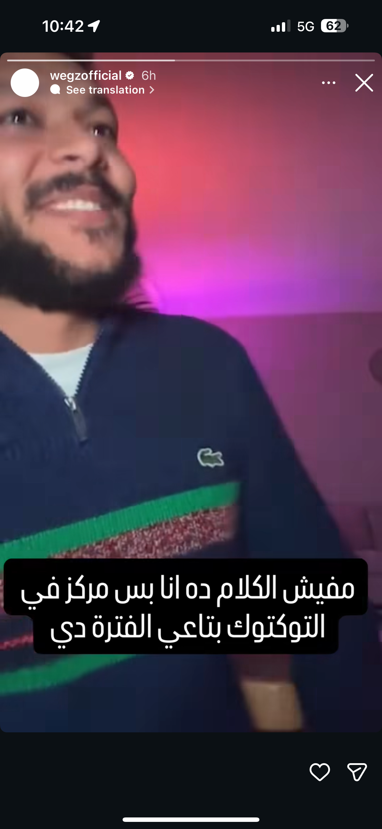 وشارك ويجز، متابعيه، فيديو جديد عبر خاصية “ستوري” على إنستجرام، علّق عليها بأسلوب ساخر، قائلًا: “مفيش الكلام ده.. أنا بس مركز في التوكتوك بتاعي الفترة دي”.