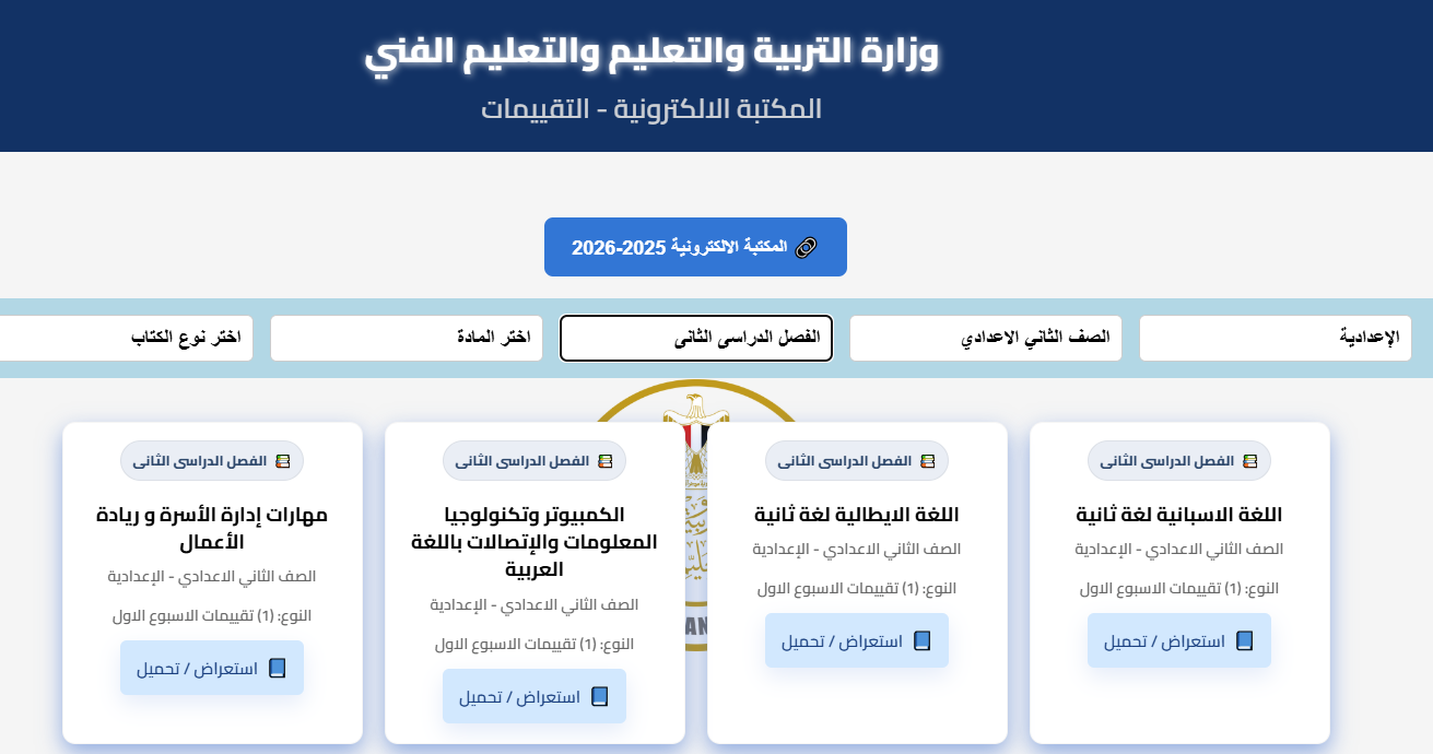 - اختيار الصف الدراسي الثاني الإعدادي.
