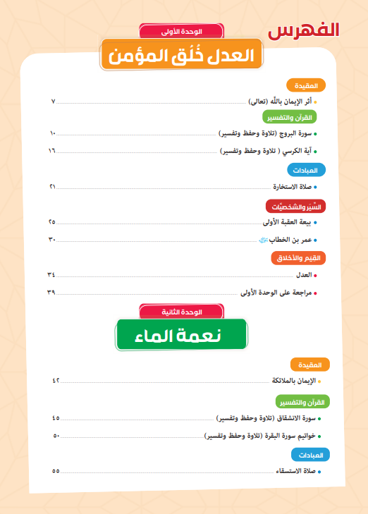 - الوصول إلى جميع الوحدات والفصول بشكل مرتب ومنظم لدعم فهم القيم الدينية والأحكام الشرعية.