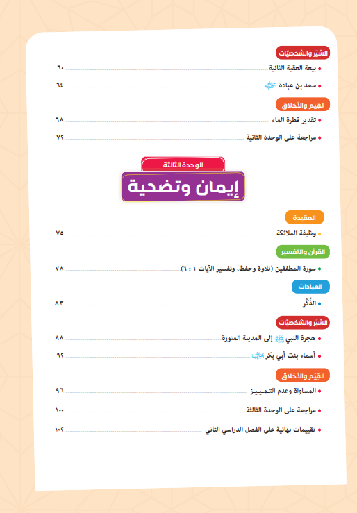 ويُمكن الاطلاع على الوحدة الثانية والثالثة من منهج التربية الدينية الإسلامية للصف الثالث الابتدائي الترم الثاني 2026 من خلال الصور التالية: