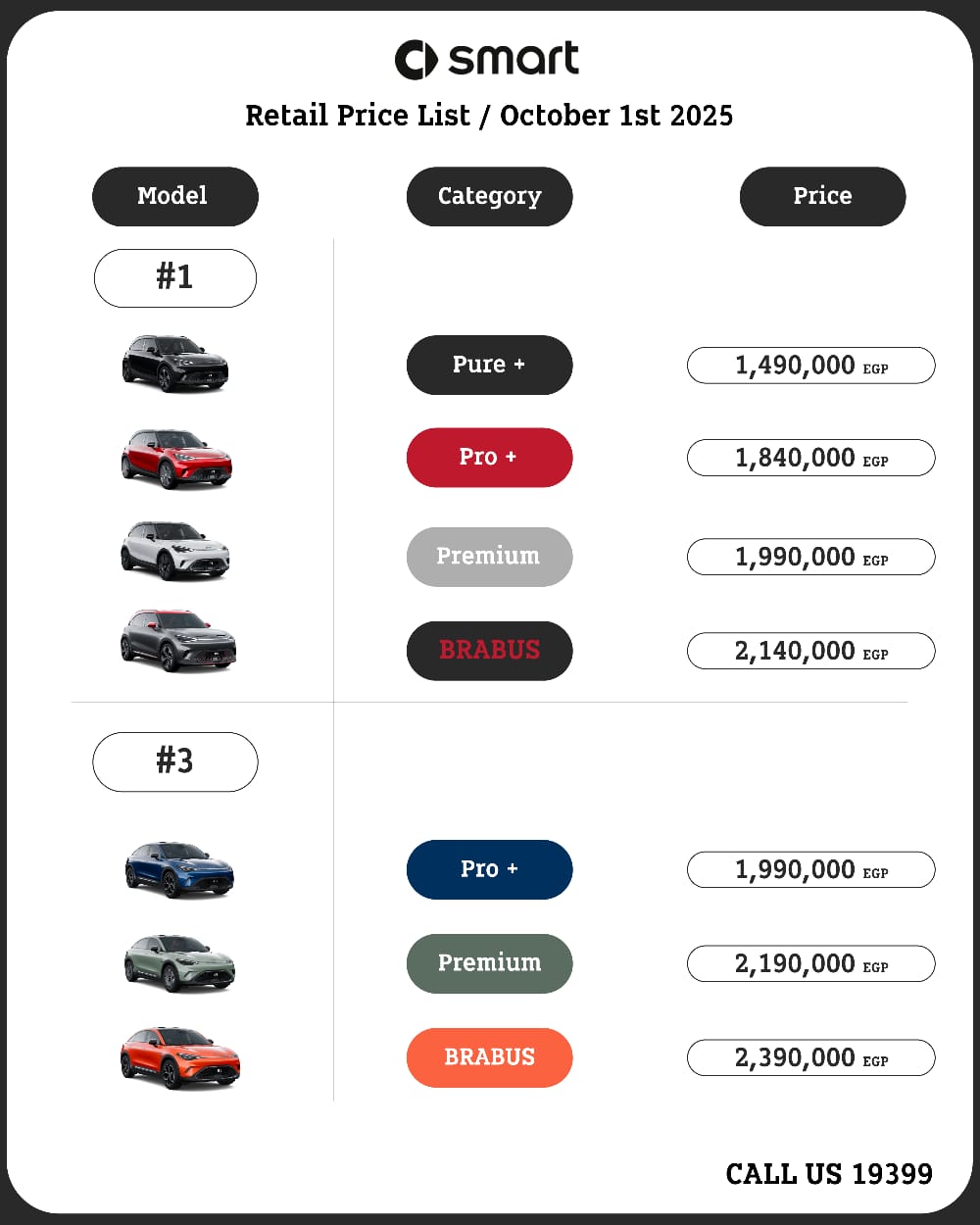 تخفيض أسعار سمارت #3 بقيمة 300 ألف جنيه على جميع الفئات