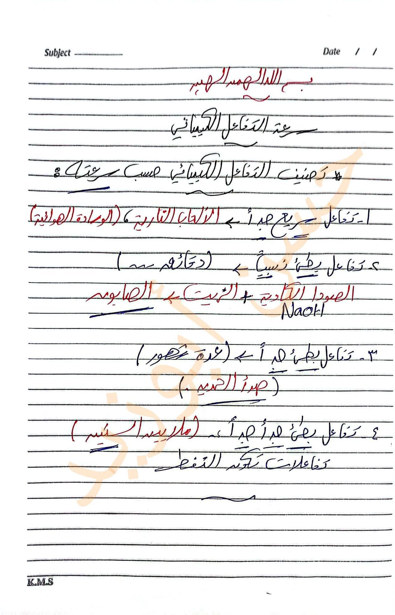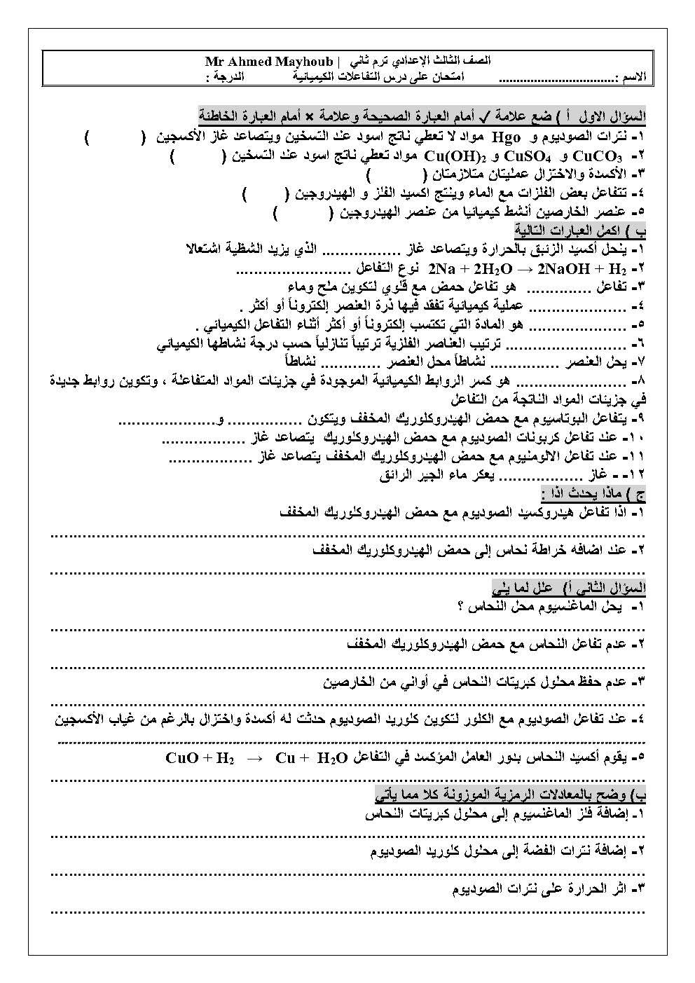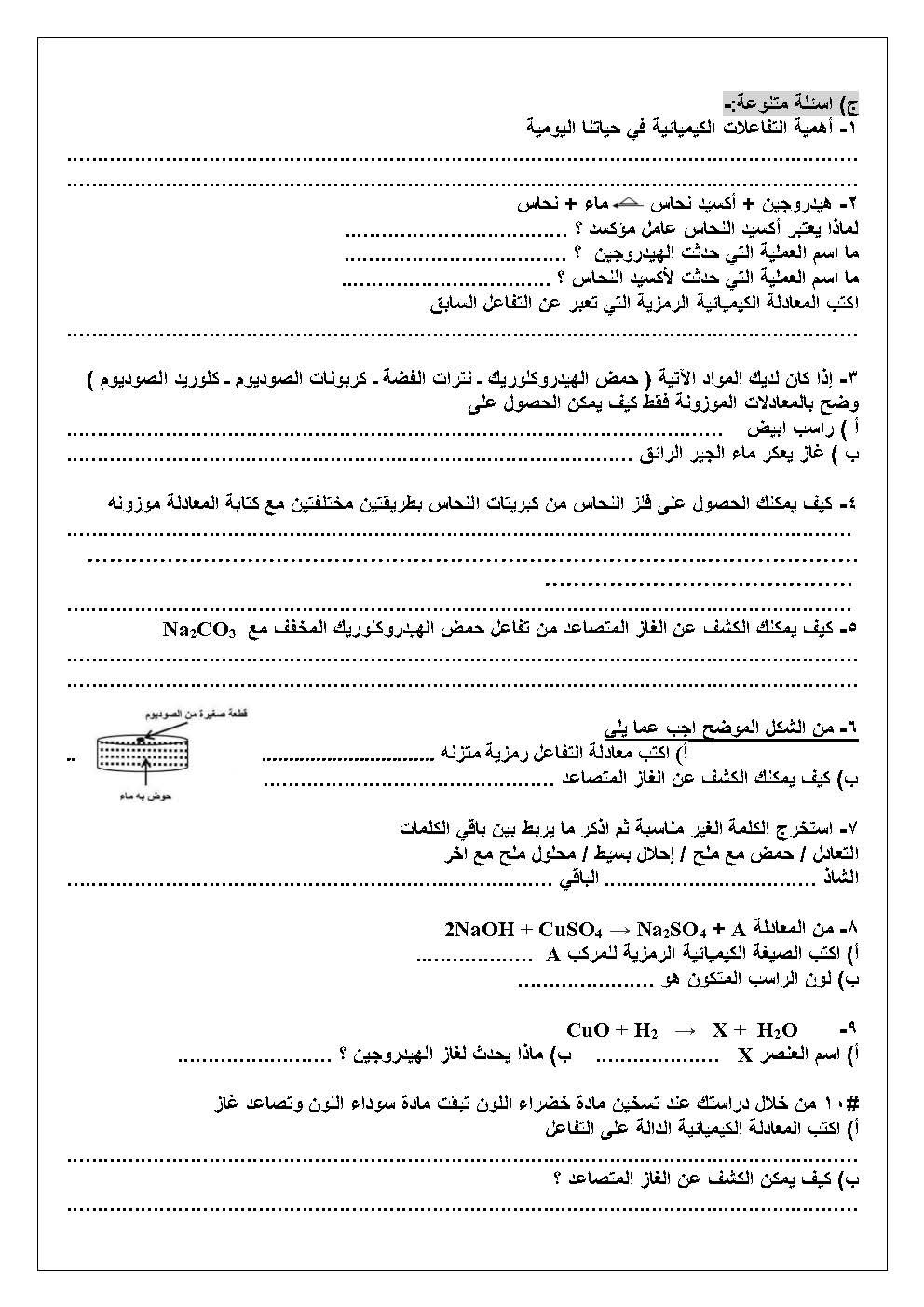 درس التفاعلات الكيميائية للصف الثالث الإعدادي