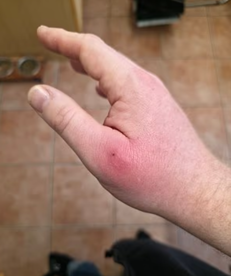 وبحسب ديلي ميل البريطانية، استيقظ كريس كيجان، البالغ من العمر 40 عامًا، ليجد لدغة حشرة صغيرة على يده اليمنى، ولم يُعرها اهتمامًا في البداية.
