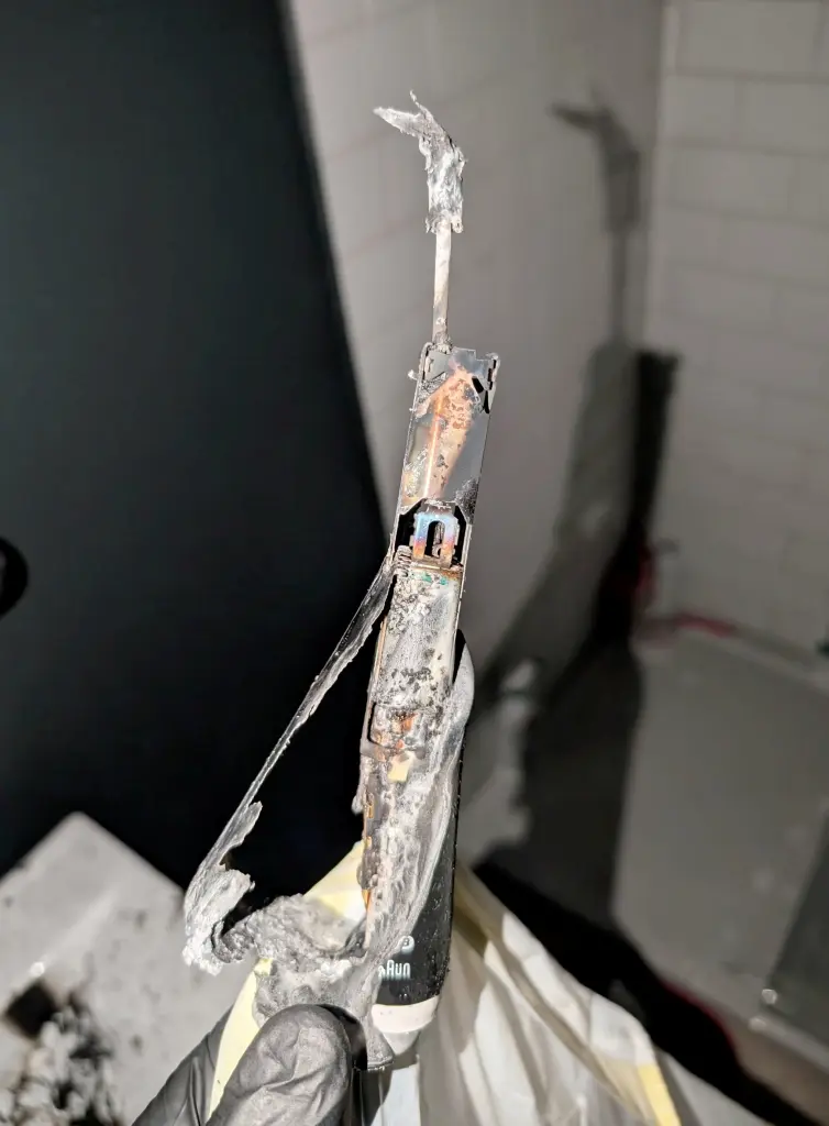 كما تطرقت باورز إلى أن الفرشاة كانت مخزنة بعيدًا عن الماء في وعاء فوق الحوض، ولم تكن موصولة بالشاحن وقت الانفجار، ولا تعرف ما الذي تسبب في الحادث، لافتة إلى أن الانفجار تسبب في انقطاع التيار الكهربائي عن المنزل بأكمله لكنها لم تسمع أي شيء خلال الليل.